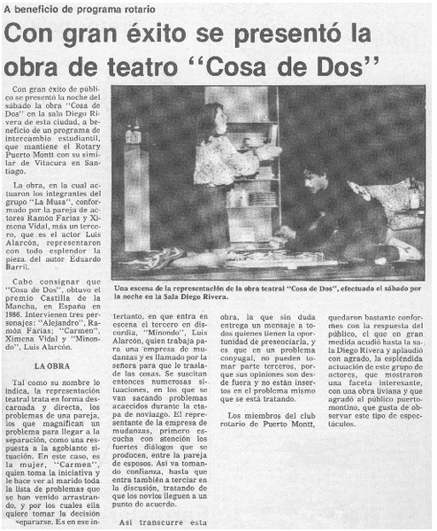 Con gran éxito se presentó la obra de teatro "Cosa de dos" [artículo].