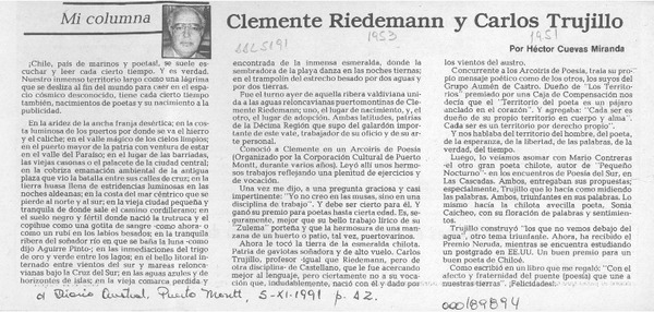 Clemente Riedemann y Carlos Trujillo [artículo] Héctor Cuevas Miranda.