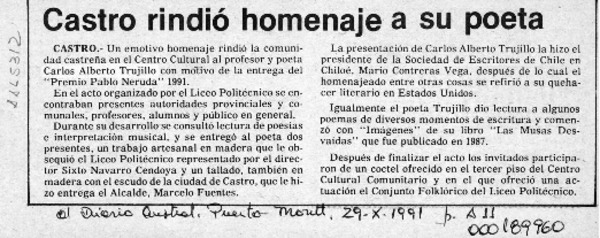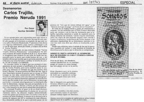 Carlos Trujillo, Premio Neruda 1991 [artículo] Oscar Gacitúa González.