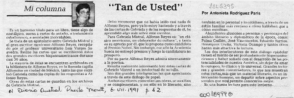 "Tan de usted" [artículo] Antonieta Rodríguez París.