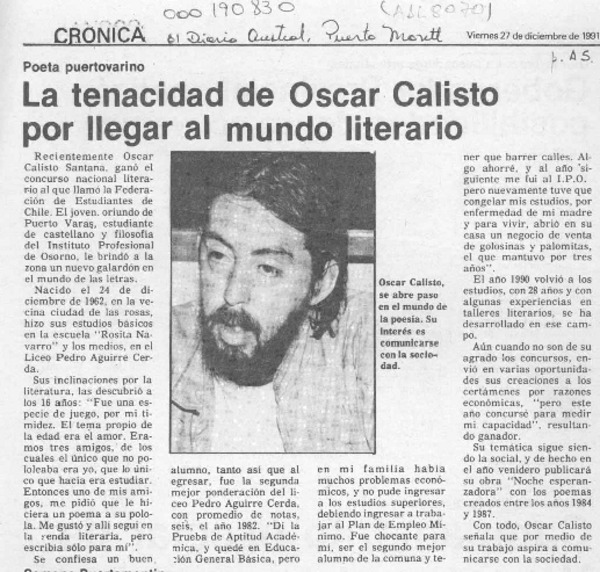 Un poeta puertomontino [artículo] Fernando Arriagada Cortés.