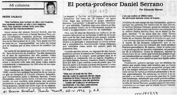 El poeta-profesor Daniel Serrano [artículo] Eduardo Nievas.
