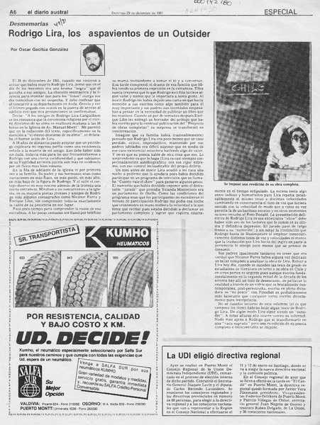Rodrigo Lira, los aspavientos de un outsider [artículo] Oscar Gacitúa González.