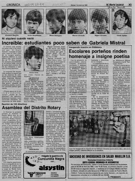 Escolares porteños en homenaje a Gabriela Mistral [artículo].