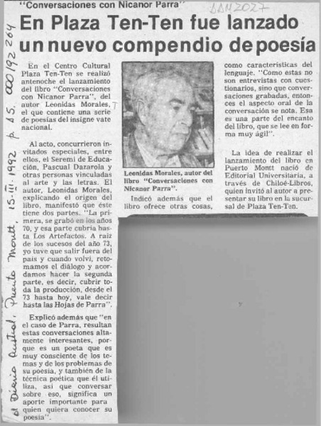 Parra, Nicanor - MORALES T., LEONIDAS - CONVERSACIONES CON NICANOR PARRA
