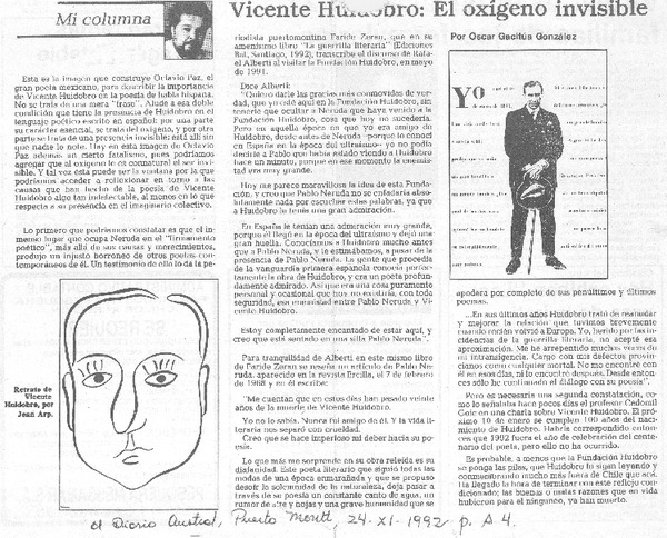 Vicente Huidobro, el oxígeno invisible [artículo] Oscar Gacitúa González.