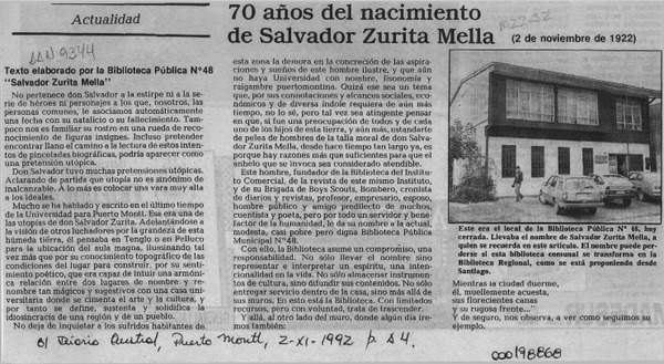 70 años del nacimiento de Salvador Zurita Mella [artículo].