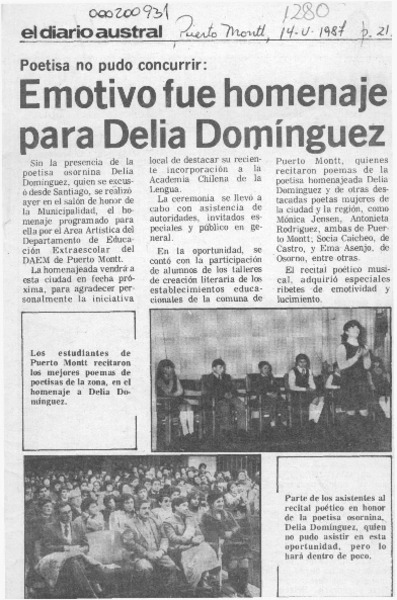 Emotivo fue homenaje para Delia Domínguez [artículo].