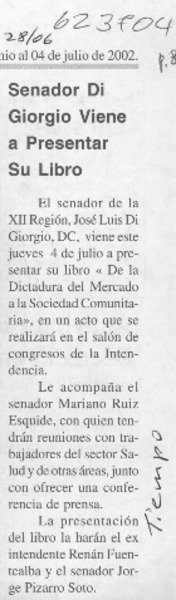 Senador Di Giorgio viena a presentar su libro [artículo]