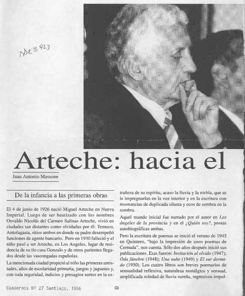 Arteche, hacia el umbral del alba [artículo] Juan Antonio Massone.