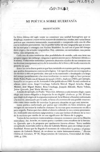 Hacia la determinación del arte poética de Gabriela Mistral, el origen del canto poético [artículo] Ana María Cuneo Macchiavello.