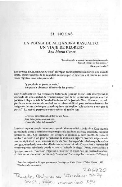 La poesía de Alejandra Basualto, un viaje de regreso [artículo] Ana María Cuneo.