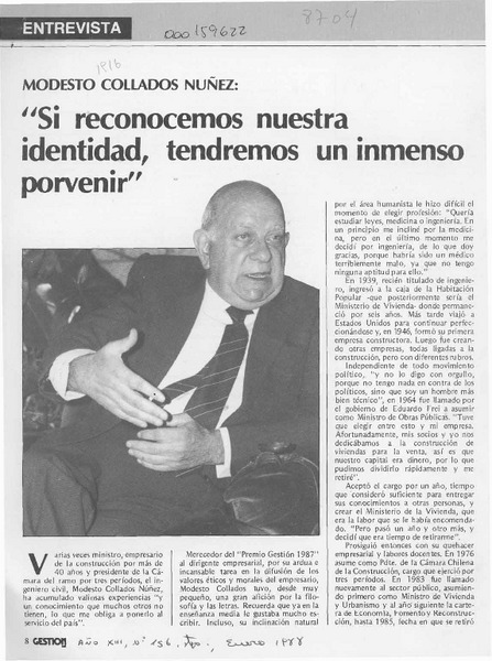 "Si reconocemos nuestra identidad, tendremos un inmenso porvenir" [artículo].