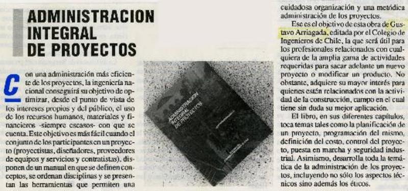 Autores chilenos - Arriagada S., Gustavo - Administración integral de proyectos