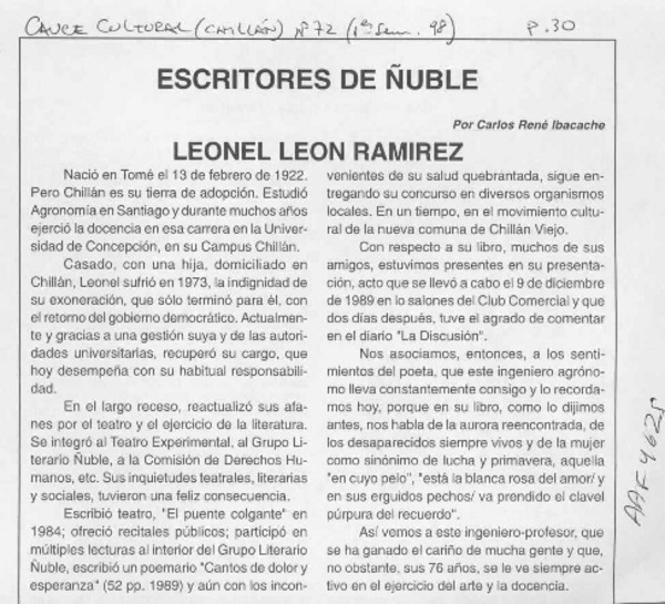 Leonel León Ramírez [artículo] Carlos René Ibacache.
