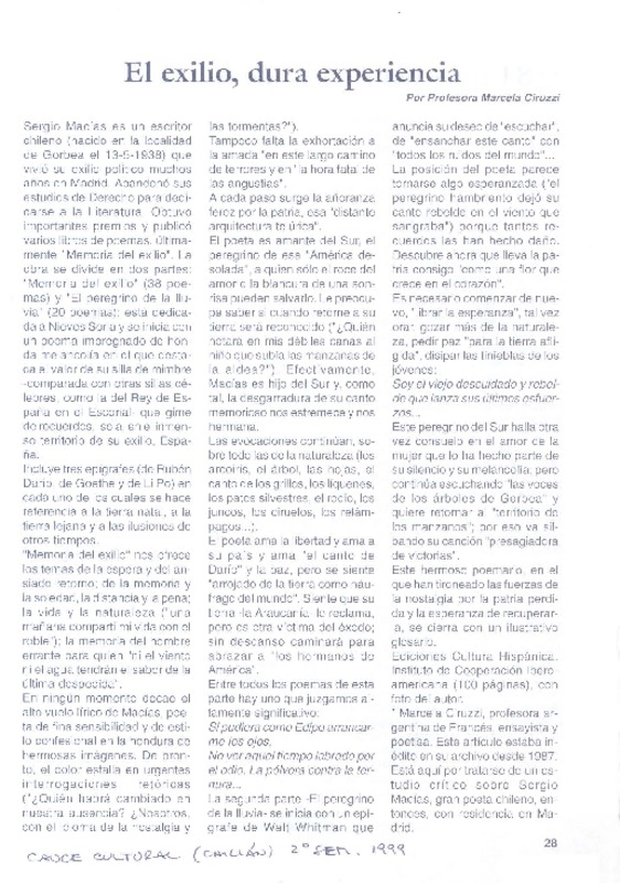 El exilio, dura experiencia [artículo] Marcela Ciruzzi