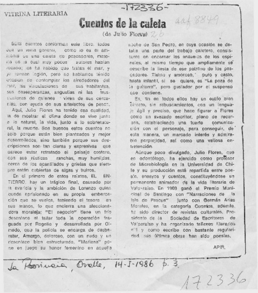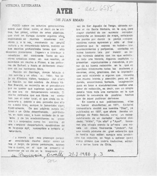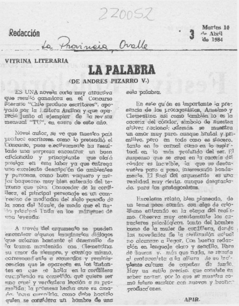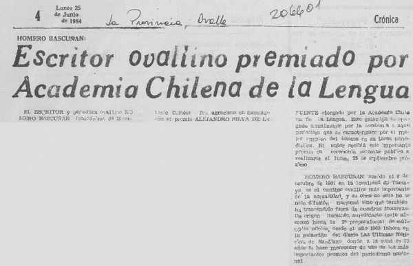 Escritor ovallino premiado por Academia Chilena de la Lengua [artículo].