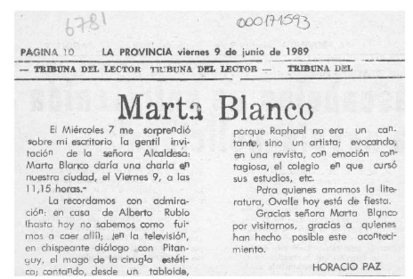 El Viernes 9 vendrá a Ovalle escritora Marta Blanco [artículo].