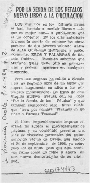 Aquí respondo, pero a los ovallinos que me han escrito [artículo] Floridor Pérez.