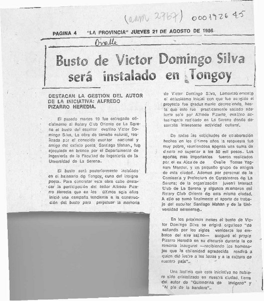 En Tongoy inauguran monumento de Víctor Domingo Silva E. [artículo].