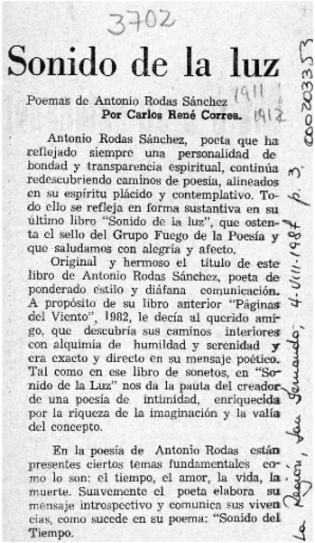 RODAS, ANTONIO - SONIDO DE LA LUZ
