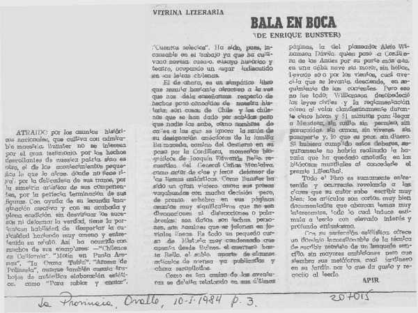 BUNSTER, ENRIQUE - BALA EN BOCA