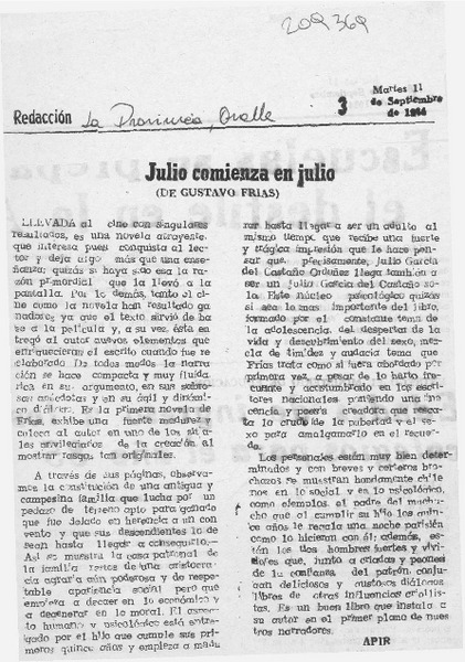 Autores chilenos - "Julio comienza en julio" - Frías, Gustavo