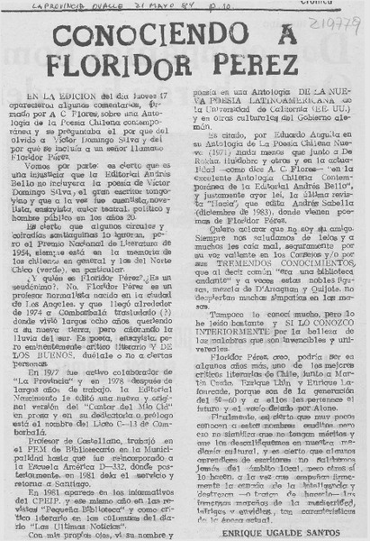 Conociendo a Floridor Pérez [artículo] Enrique Ugalde Santos.