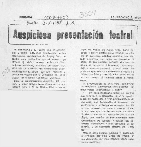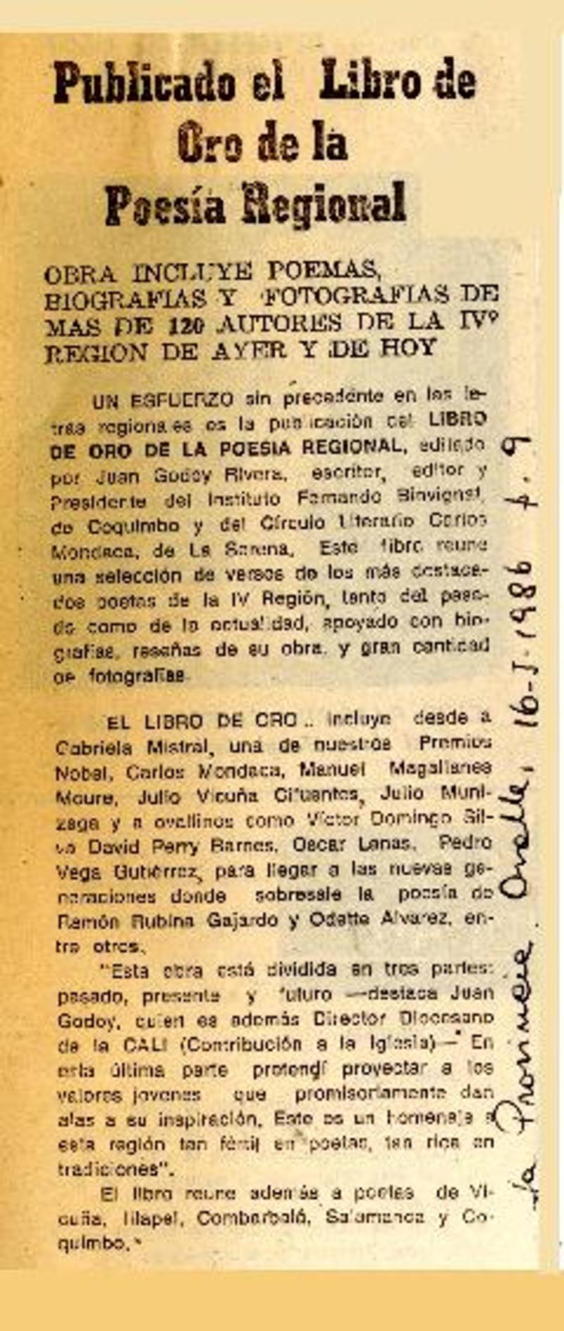 Dos libros serán editados en homenaje a aniversario de Ovalle [artículo].