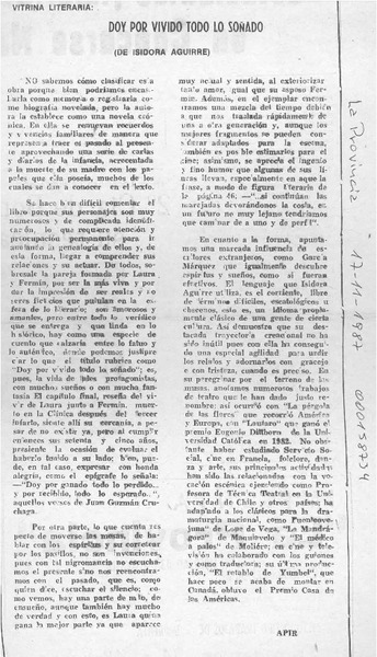 AGUIRRE, ISIDORA - DOY POR VIVIDO TODO LO SOÑADO