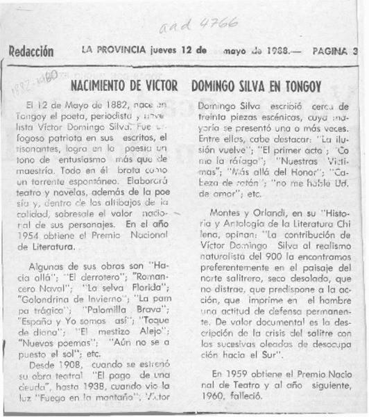 Nacimiento de Víctor Domingo Silva en Tongoy [artículo].