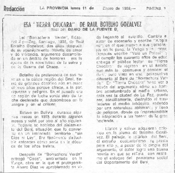 Esa "Tierra chúcara" de Raúl Botelho Gozálvez [artículo] Darío de la Fuente D.