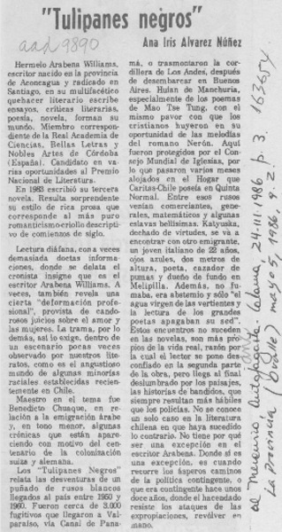 "Tulipanes negros" [artículo] Ana Iris Alvarez Núñez.
