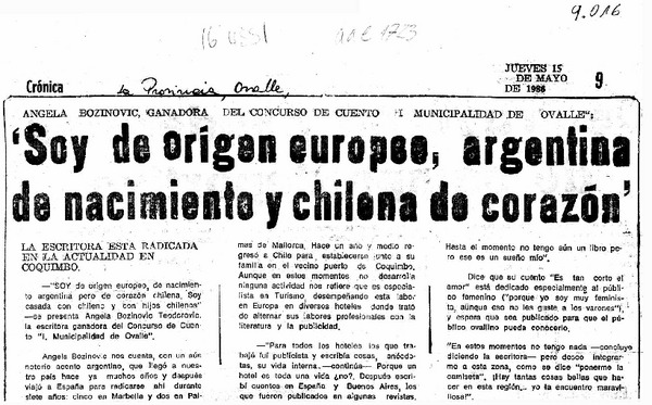 "Soy de origen europeo, argentina de nacimiento y chilena de corazón" [artículo].