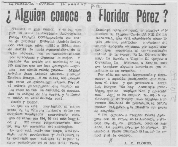 Alguien conoce a Floridor Pérez? [artículo] A. C. Flores.