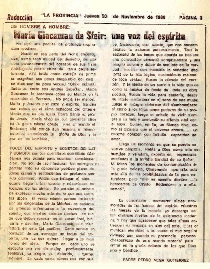 Padre Vega presentará su nuevo libro, "Pan de mujer" [artículo].