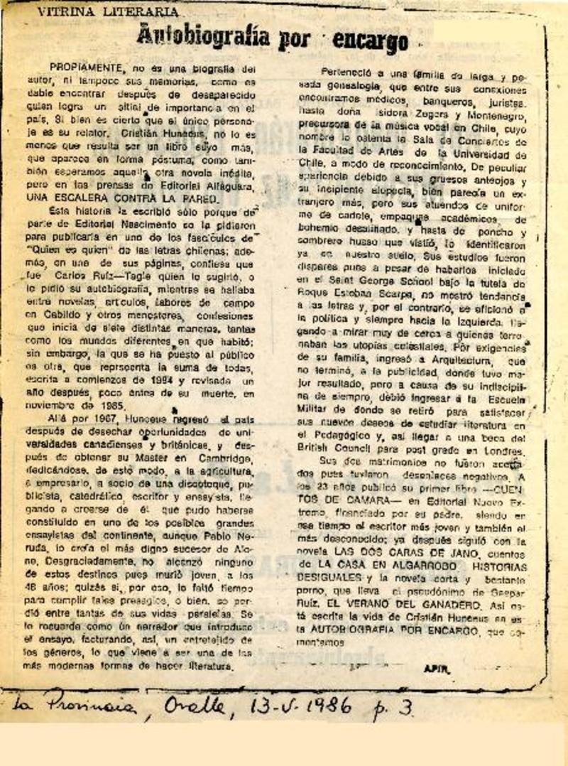 HUNEEUS, CRISTIAN - AUTOBIOGRAFIA POR ENCARGO