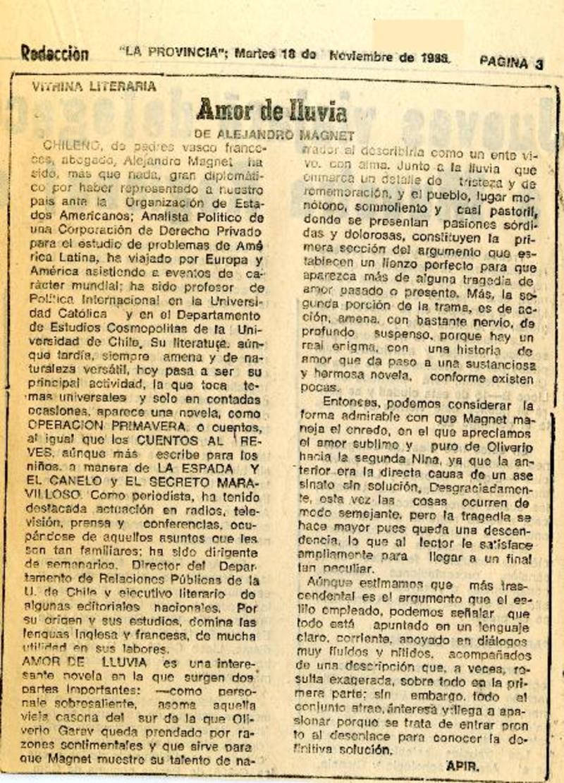 El poeta que nos trajo la lluvia [artículo] Mario E. Banic.