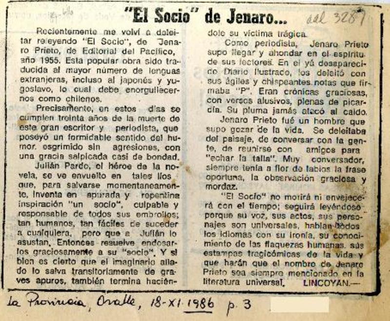 "El socio" de Jenaro -- [artículo] Lincoyán.