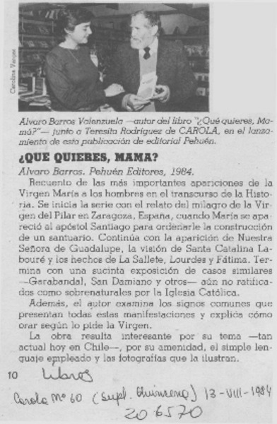 BARROS VALENZUELA, ALVARO - QUE QUIERES MAMA