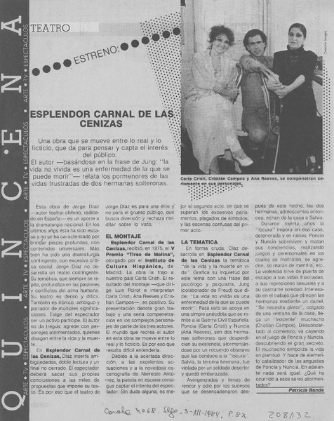 "Esplendor carnal de la ceniza" [artículo] Patricia Bande.