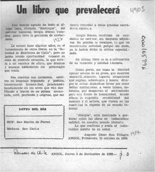 Un libro que prevalecerá [artículo] Augusto César Roa Villagra.
