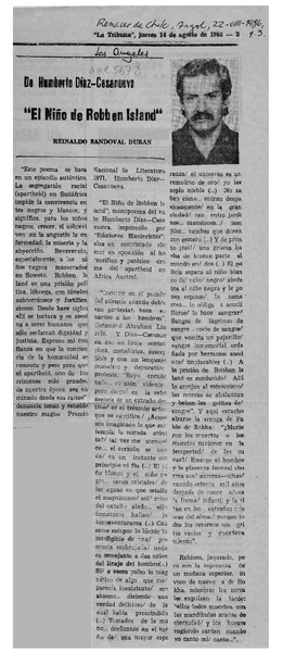 "El niño de Robbe Island" [artículo] Reinaldo Sandoval Durán.