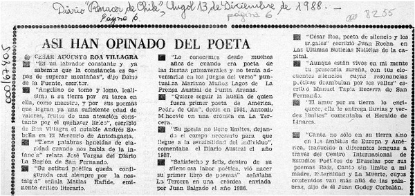Augusto César Roa Villagra [artículo] Miguel Angel Roa Rioseco.