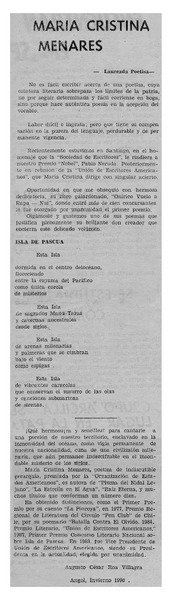 María Cristina Menares [artículo] Augusto César Roa Villagra.