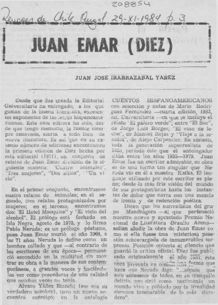 Juan Emar (Diez) [artículo] Juan José Irarrázabal Yáñez.