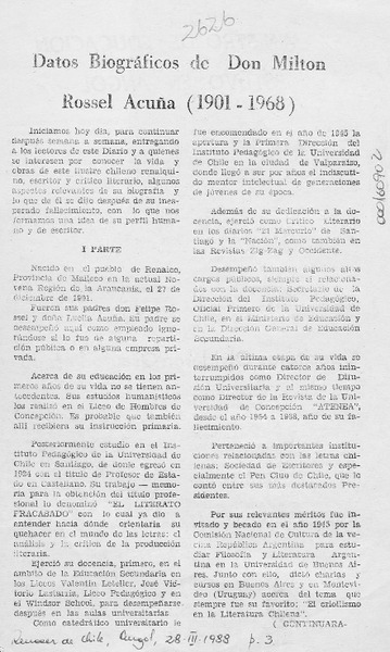 Datos biográficos de don Milton Rossel Acuña (1901-1968) [artículo] Alberto Ribet Cea.
