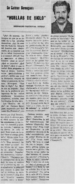 De Carmen Berenguer, "Huellas de siglo" [artículo] Reinaldo Sandoval Durán.