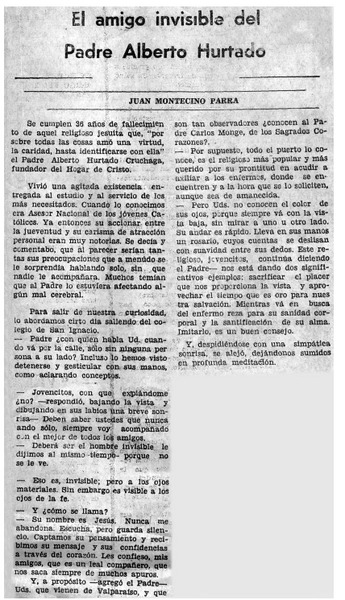 El amigo invisible del padre Alberto Hurtado [artículo] Juan Montecino Parra.