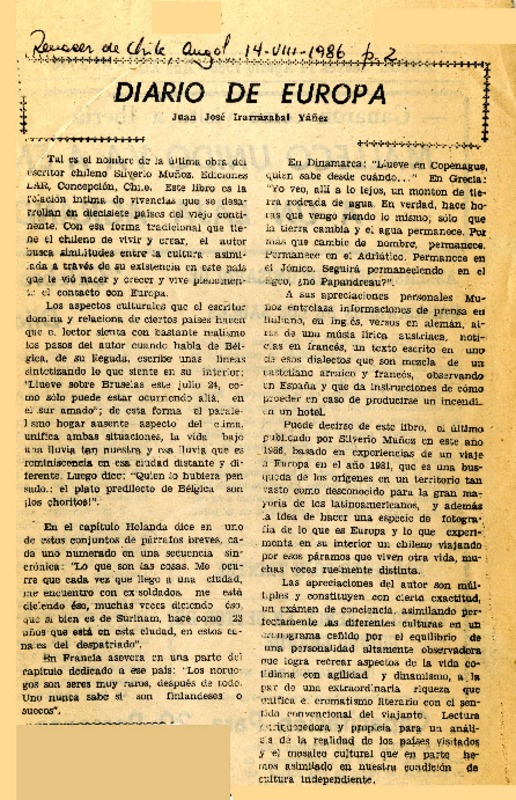 Diario de Europa [artículo] Juan José Irarrázabal Yáñez.